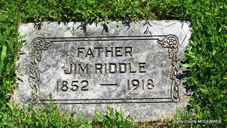 | RIDDLE, James William "Jim" | 1852 | Feb. 19, 1918 Cross Hollows, Barry Co., MO |