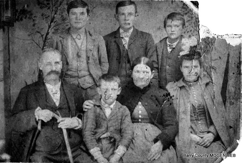 The first is Lafayette David Oxford. The second picture is his family. Seated: Lafayette, Earl (nicknamed Gilly), Sarah Jane Calton Betterton Oxford, and Ida (she married Elisha Eagle) Standing: Sherman, Jacob and Francis The picture was undated but I believe about 1892 or 93 would be correct. Lafayette is my great great Grandfather. My great Grandfather William Washington Oxford was his son by his first wife, Parthenia Horton.