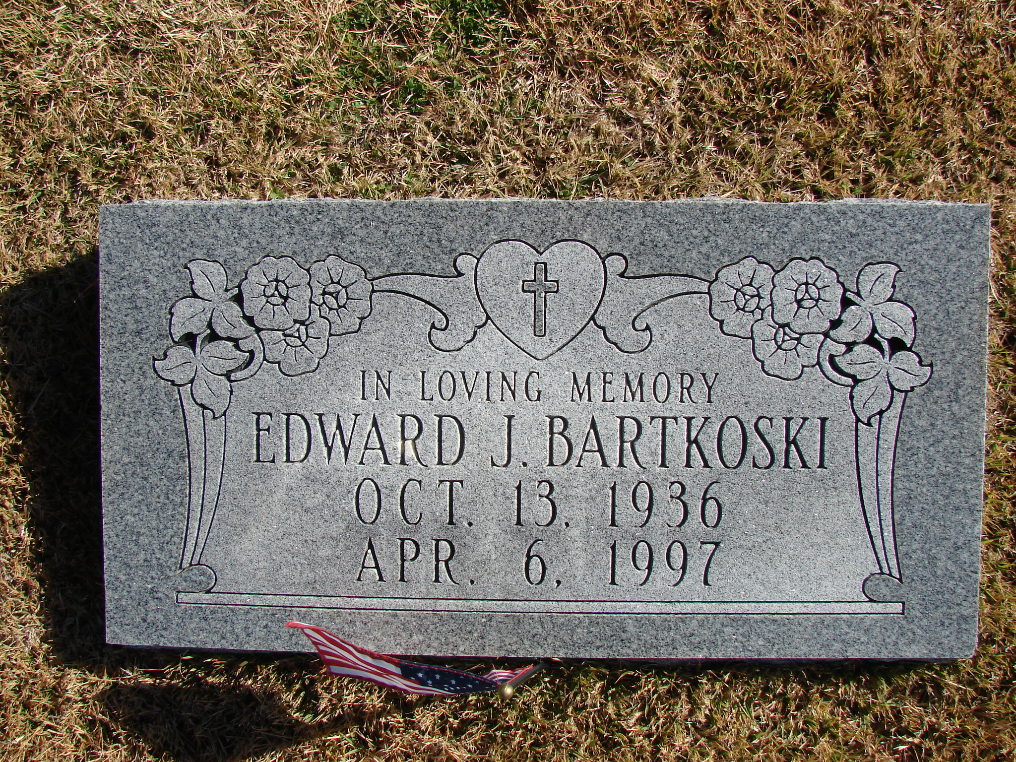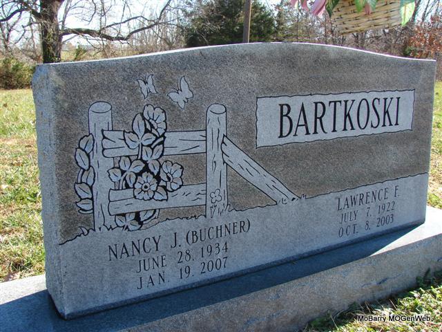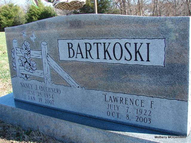 | BARTKOSKI, Edward J. | Oct. 13, 1936 | Apr. 6, 1997 | Inscription: "In Loving Memory" - Research Note: Son of Joseph Lawrence Bartkoski and Helen J. Roschevitz. Edward J. Bartkoski, age 30, born Oct. 13, 1936, married Helen M. Klimeczek, age 24, born Mar. 29, 1942, in Jackson Co., MO. | Census MO Marriage Records Phyllis Long Photo Jim Pierce |