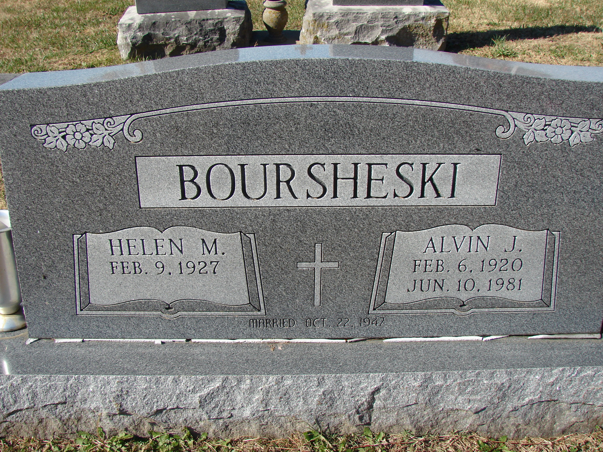 June 10, 1981 | SSW: Helen M. - Research Note: Alvin J. Boursheski, born Feb. 6, 1920 in MO, died June 10, 1981. Alvin was a son of Stoney / Stanley Boursheski and Josephine Stipp. He is listed on the Barry Co., MO courthouse wall as WW II Veteran. - Notes for Alvin J. Boursheski. | Census Notes Phyllis Long Dates from Book-Past & Present Frank Hatton Photo Jim Pierce |