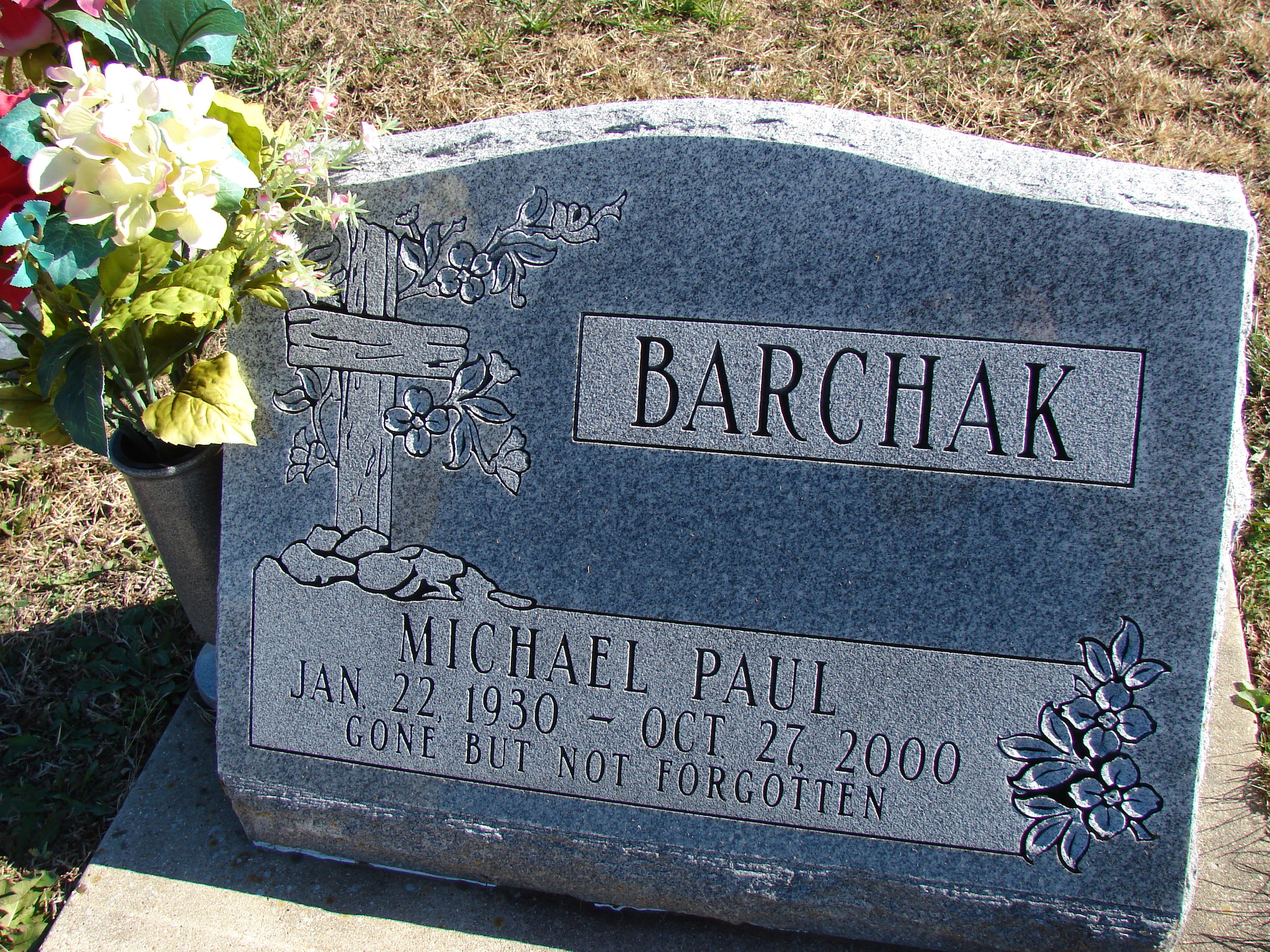Inscription: "Gone But Not Forgotten" - Research Note: Son of Joseph and Anna (Bartkoski )Barchak. He was an Army veteran and a member of the American Legion and Knights of Columbus. He was preceded in death by four brothers, Albert, Frank, Steve, and Leo Barchak; and one sister, Elizabeth Clayton. - Notes for Michael Paul Barchak | Monett Times Oct. 31, 2000 Mary Homesley Notes Phyllis Long Dates from Book-Past & Present Frank Hatton Photo Jim Pierce |