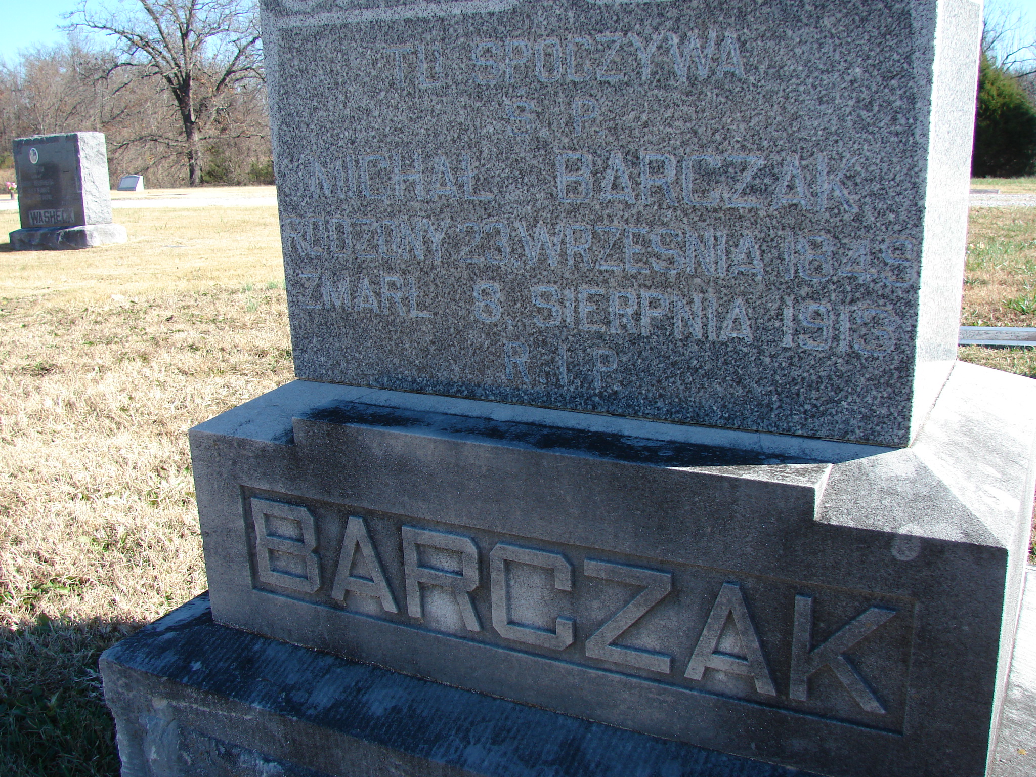 Research Note: Son of Frank Barczak, born Germany. His wife was Apolonia Weudrowicz. Had sons Joseph B. and Anthony. - Stone inscription is written in Polish. - Notes for Michal Barczak | Notes Death Certificate Phyllis Long Dates from Book-Past & Present Frank Hatton Photo Jim Pierce |
