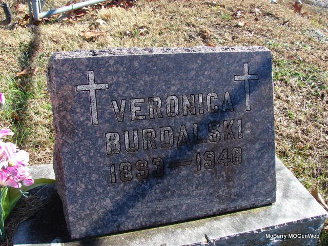 Research Note: She was the first wife of Joseph Burdalski. - 1912 Barry Co., Marriages - Wandzlewicz, Veronica age 17 and Burdalski, Joseph age 22 on May 7, 1912. Her death certificate reads: Frona Burdolski (Vonslevitz / Wandzlewicz ). She was born Apr. 7, 1893 in Pierce City, MO and died Mar. 27, 1948 in St. Vincent Hosp., Monett, Barry Co., MO. She was married to Joe Burdolski and was a daughter of Carl Vonslevitz and Anna Abromovitz, both born Poland. Her usual residence was Purdy, MO. Notes for Veronica Burdalski | Death Certificate Census MO Marriage Records Notes Phyllis Long Dates from Book-Past & Present Frank Hatton Photo Jim Pierce |