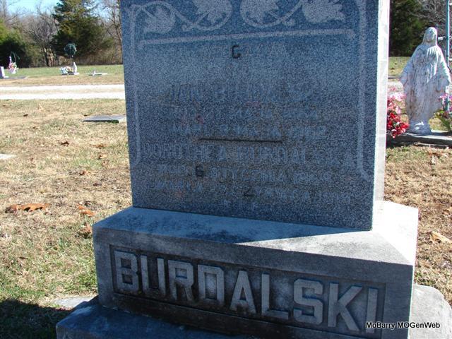 SSW: Dorthea - Research Note: Death Certificate indexed as Burdolski. Parents not named. Amelia Doty of Stark City, MO was the informant. 1910 Census Missouri;Barry;Shoal Creek;District 17 Indexed at Ancestry.com as Burdlucke John Burdalski, head, age 40, married for 22 years, born abt 1870 Poland, parents born Poland Dora, wife, age 36, born abt. 1874 Poland, married for 22 years, mother of 3 children, 3 living, parents born Poland Joseph, son, age 21, single, born abt. 1889 MO John, son, age 18, born abt. 1892 MO Rosy, daughter, age 12, born abt. 1898 MO |