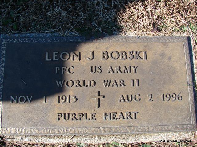 | BOBSKI, Leon John | Nov. 1, 1913 | Aug. 2, 1996 | SSW: Irene C. - Inscription: "Married Nov. 16, 1946" - Research Note: He was the son of Frank Bobski and Mary Mary Zerniski. His wife was Irene Clara Golubski. - Military Stone - Inscription: "PFC US ARMY - WORLD WAR II - PURPLE HEART " - Notes for Leon J. Bobski | Census Notes Phyllis Long Photo Jim Pierce |