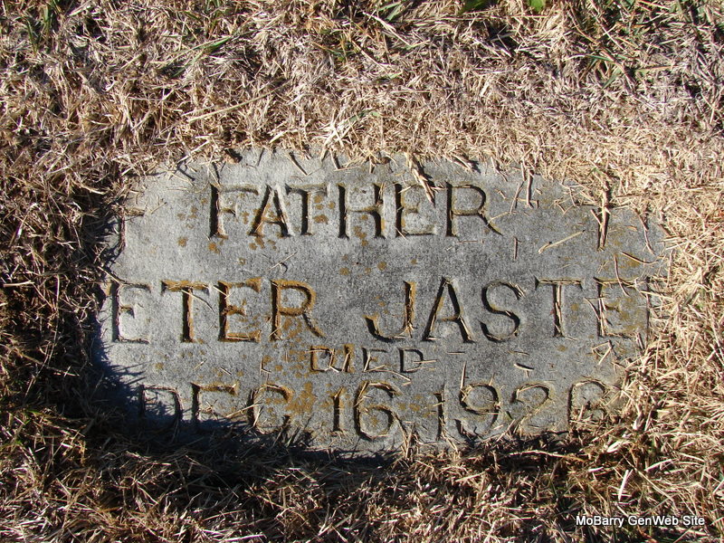 Military Stone Inscription: "MISSOURI - PFC 69 - INFANTRY - WORLD WAR I" - Research Note: He was a son of Peter and Mary (Staponski) Jaster. His wife on the death certificate was Beatrice Jaster and she was the informant on the death certificate. He married Seraphine Rose Cendroski on May 6, 1919, Pulaskifield, Barry Co., MO. Rose died May 1922 and Antone is living with his sister in the 1930 census. His son and daughter, Clarence and Irene, are living with Rose’s sister Josephine and family. - Notes for Antone Peter Jaster | Death Certificate Census Notes Phyllis Long Dates from Book-Past & Present Frank Hatton Photo Jim Pierce |