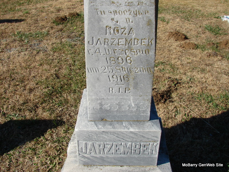 Research Note: This stone is inscribed in Polish. Daughter of John Jarzembek and Dora/Dorothea Wiergowski. - Notes for Rosa Jarzembek | Census Notes Phyllis Long Dates from Book-Past & Present Frank Hatton Photo Jim Pierce |