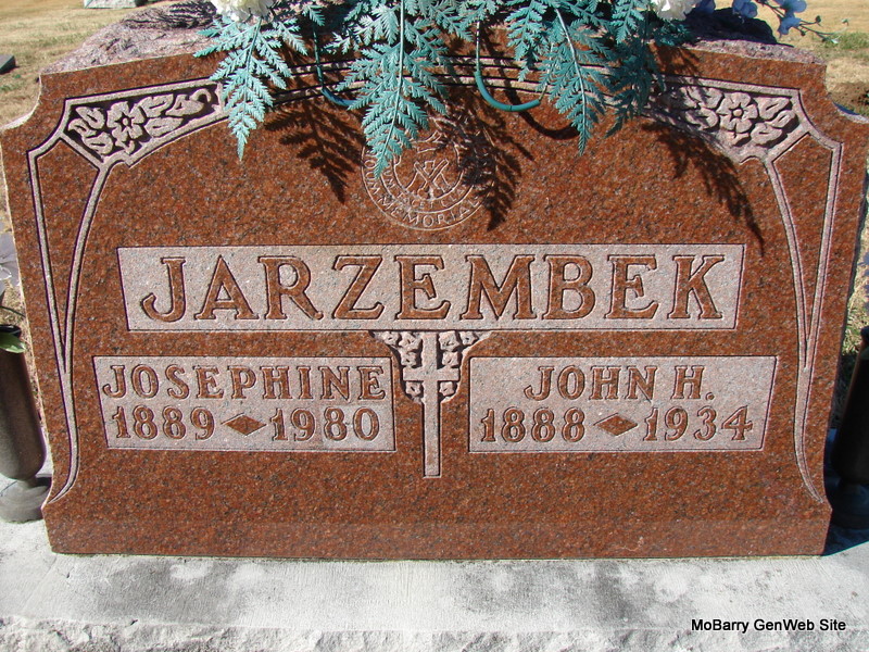 SSW: Josephine - Research Note: He was a son of John Jarzembek and Dora/Dorothea Wiergowski. Death certificate gives his wife as Frances, proably a middle name. - MO Marriage Records: Jarzembek, John and Zebert, Josie on Jan. 17, 1911 (no ages given) - Notes for John Jarzembek | Note Donna Cooper Death Certificcate Census MO Marriage Records Notes Phyllis Long Book-Past & Present Frank Hatton Photo Jim Pierce |