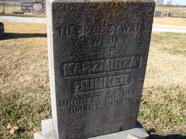 1894 | Research Note: Son of Joseph and Anna Maria Junker/Younker. Husband of Rose Ankewicz. He and Rose left Hamburg, Deutschland for New York on May 17, 1882. This stone has an inscription but it is written in Polish. | Hesse Germany Records Passenger Lists Census Phyllis Long Dates from Book-Past & Present Frank Hatton Photo Jim Pierce |