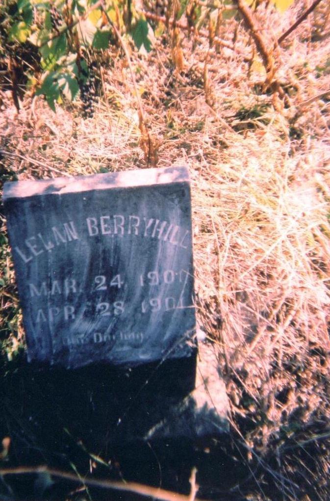 Research Note: J. D. Berryhill, husband of Clara (Hancock) Berryhill was listed in the Barry Co., MO, deed records as living in Township 22N, Range 28W, Section 33 of Barry County, MO. Other people who lived in that Section were W. C. and M. E. Werge, C. T. Hickman, A. C. Chadd, J. J. Barnes, J. R. Hogg, I. B. Davis, O. D. Davis, W. L. Black and T. J. Barnes. On Section 33 and down the road from J.D. Berryhill's 60 acres was a mill near by, located on the Westmoreland property. J. D. Berryhill's land was located in this section and was west of the railroad that leaves Washburn and goes south. The railroad was down the hill to the east and toward what is now Hwy 37. Old Washburn Cemetery sits back up on the hill from where the Old Wire Road crossed the tracks and meets with Hwy 37. Clara (Hancock) Berryhill was buried there May 28, 1925 beside an infant that was already buried there and who was named Leland Berryhill and who died April 28, 1901. There are no other Berryhill graves there. Jeff is buried in Parlier, CA, near other Berryhill relatives. Clara was a daughter of Rev. Golman Buford and Mary Minerva (Burris) Hancock. - Another Photo - Another Photo - Another Photo | Note Donna Cooper Photos Donna Cooper Darla Ball Marbut |