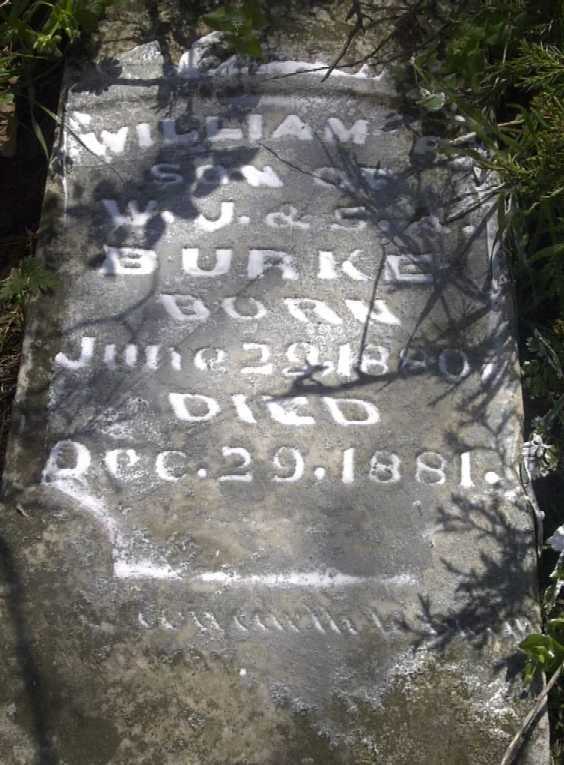 | BURKE, William | June 28, 1880 | Dec. 29, 1881 | Research Note: William was the son of William J. aka Jake Burke and Sarah "Sallie" Ann Cargile. Jake and Sallie were married on Sept. 11, 1879 in Barry Co., MO. She was the daughter of John Cargile and Emaline Eubank. - Another Photo | Note Phyllis Long Photos Donna Cooper Darla Ball Marbut |