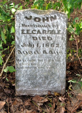 July 1, 1862 | Inscription: "Husband of E. E. Cargile" - Research Note: John Cargile married Emeline E. Eubank, Aug. 6, 1840. Son of James Cargile and Sarah Martin. - (Probate record for John Cargile, note that the year is 1860. His tombstone has his death as 1862.) Probate Court, State of Missouri, County of Barry - This day personally appeared before the undersigned, Judge of Probate in and for the County and State aforesaid, Isaac Peavey, who being duly sworn, make oath that to the best of his knowledge that John Cargile died without a will, and that the following named persons are heirs of said deceased, viz: Emeline Cargile, widow of said deceased, James T. Cargile, Nancy Jane Cargile, Sarah Ann Cargile, Mary Elizabeth Cargile, Harriet Adeline Cargile, Isaac Dean Cargile, John Harbin Cargile, Eliza Ann Cargile, they all reside in Barry County, State of Missouri and that I will make a perfect inventory of all money and property of said estate, and faithfully discharge the duties of administrator required by me by law; and pay the debts of said deceased, so far as the assets in my hands may extend and the law direct; pay over and account for all assets that come to my possession or knowledge. Sworn and subscribed before me this 30th day of August, 1860. --- I do hereby certify that I relinquish all my rights of Administration of the Estate of John Cargile deceased to Isaac Peavey, the 17th August, 1860. Emaline Cargile (her mark) - 1860 Census, Barry Co., MO, Sugar Creek Twp., house #370 - John Cargile is listed as head of the household, age 45. He was born in TN and listed his wife as Emeline, who was born in VA, and was age 45. Children were given as James, age 18; Nancy, age 16; S. A., female, age 14; Mary, age 13; Harriet, age 10, Isaac, age 7, John, age 3, and E. A., female, age 5/12. All were born in MO. - Another Photo | Notes Phyllis Long Census Donna Cooper Photos Donna Cooper Darla Ball Marbut |