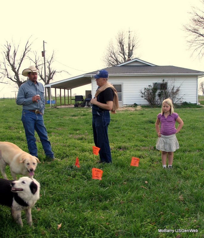 Jack Fly, Mr. Rehwinkle, and I went out there on April 8, 2011 and walked all over that area, but didn't find the stone. However, using his grave dowsing rods, Jack was able to determine where the grave was. It was small, like that of a child, and seemed to be that of a female, according to the particular information gleaned from the rods.