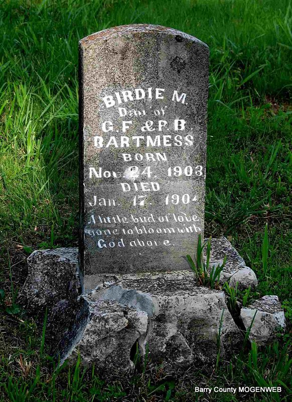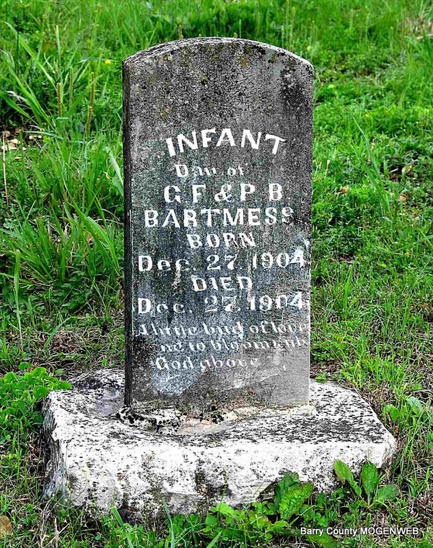 | BARTMESS, George Franklin | Mar. 31, 1875 Barry Co., MO |
