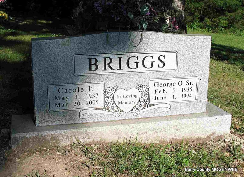 SSW: George O. - Research Note: Carole L. Briggs, 67, of Golden, died March 20, 2005, at Carroll Regional Medical Center in Berryville, Arkansas. She was born May 1, 1937, in Boston, Massachusetts. She moved to Golden 11 years ago. She married George Orin Briggs on August 26, 1975, in Newport, Oregon, and he preceded her in death June 1, 1994. She was preceded in death by her father, Raymond L. Leighton. Her mother was Phyllis A. Ludkin. | Photo Jack Fly Monett Times Mar. 22, 2005 Donna Cooper SS Claims Index Phyllis Long |