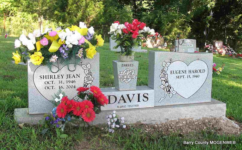 SSW: Eugene Harold - Inscription: "Married June 10, 1965" - Research Note: Daughter of Vernon and Mildred (Miers) Davis. She was a nursing assistant for Spring River Nursing Home in Joplin. She married Eugene Davis on June 10, 1965. She was preceded in death by one sister. | Monett Times Oct. 20, 2004 Mary Homesley Photo Jack Fly |