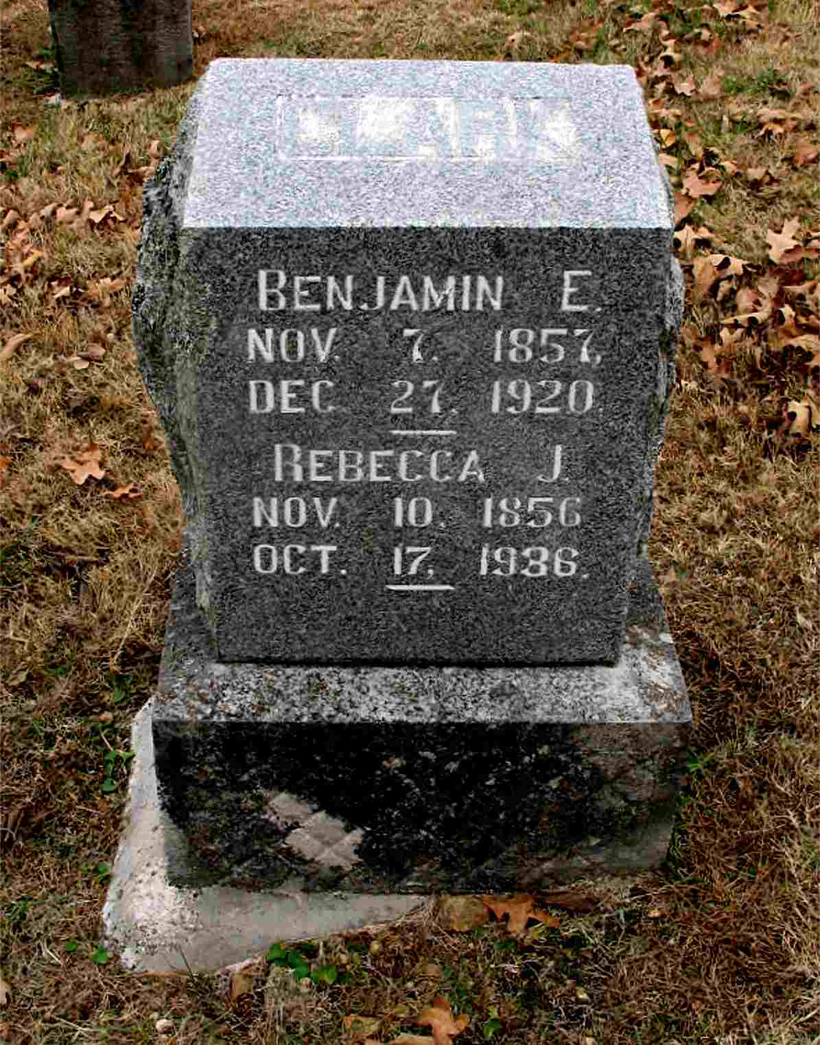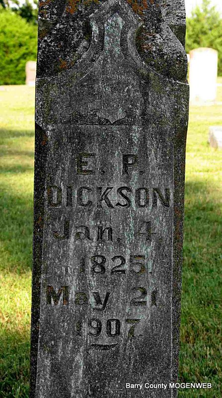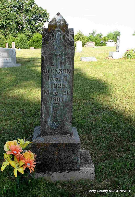| ELLMORE, John H. | Mar. 31, 1853 | Jan. 9, 1939 | Research Note: Son of Isaac and Margaret (Palmer) Ellmore. He first married Mary Sparks. John H. Ellmore second married Polly M. Hall on Sept. 21, 1912 in Barry Co., MO. Daughter of John Hall and Caroline King. She is buried at Horner Cemetery. - September 26, 1912, Thursday, Cassville Republican - Married: John H. Elmore of Eagle Rock and Miss Polly Hall, southeast of Cassville were married Saturday evening by Nan Baker at his residence, about four miles east of Cassville. The bride is a daughter of the late Mr. and Mrs. John Hall and is a splendid young woman. She has lived near Cassville most of her life and her friends are numbered by her acquaintance. Mr. Elmore is held in high esteem in the community where he resides and is one of Barry County's successful farmers. The REPUBLICAN joins with their many friends in wishing them a prosperous and happy life. | Census MO Marriage Records Phyllis Long Headstone Darla Ball Marbut Photo Jack Fly |