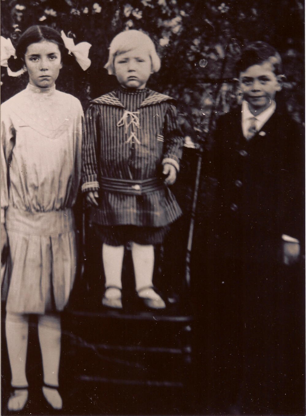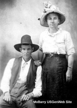 SSW: Sarah Anna - Research Note: Son of James Eagleson and Sarah Andrews. Herbert Eagleson, age 19, married Sarah Annie Lee age 16, on June 25, 1899 in Barry Co., MO. James Eagleson, father of Herbert, and David Lee, father of Annie, gave consent. - Cassville Republican, May 9, 1918 - Herbert Eagleson of near Mano died Thursday May 9 of tuberculosis, at the age of 38 years. He leaves a widow and a number of children. The funeral was held Friday and interment made in the Viney cemetery. - His death certificate names James Eagleson as his father. Mother not named. Annie Eagleson was the informant. His mother was Sarah Andrews. - October 28, 1915, Thursday, Cassville Republican - Washburn News: Albert Eagleson of Alluwe, Okla., visited his brother, Herbert, near Golden last week and attend to business in the probate court in Cassville Friday. He says that the farmers in that part of Oklahoma hardily know what to do about sowing wheat on account of the fly and the wet weather. - Photo of Herbert and Sarah - Another Photo | Online Newspapers Online Obit Death Certificate Donna Cooper MO Marriage Records Phyllis Long Headstone Darla Ball Marbut Photo Jack Fly |