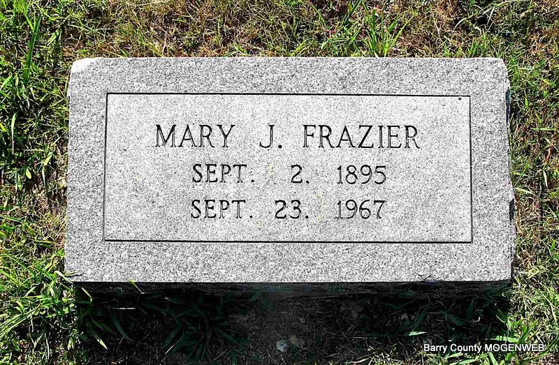 | FRAZIER, Mary Jane (ALLEN) | Sept. 2, 1895 Barry Co., MO |