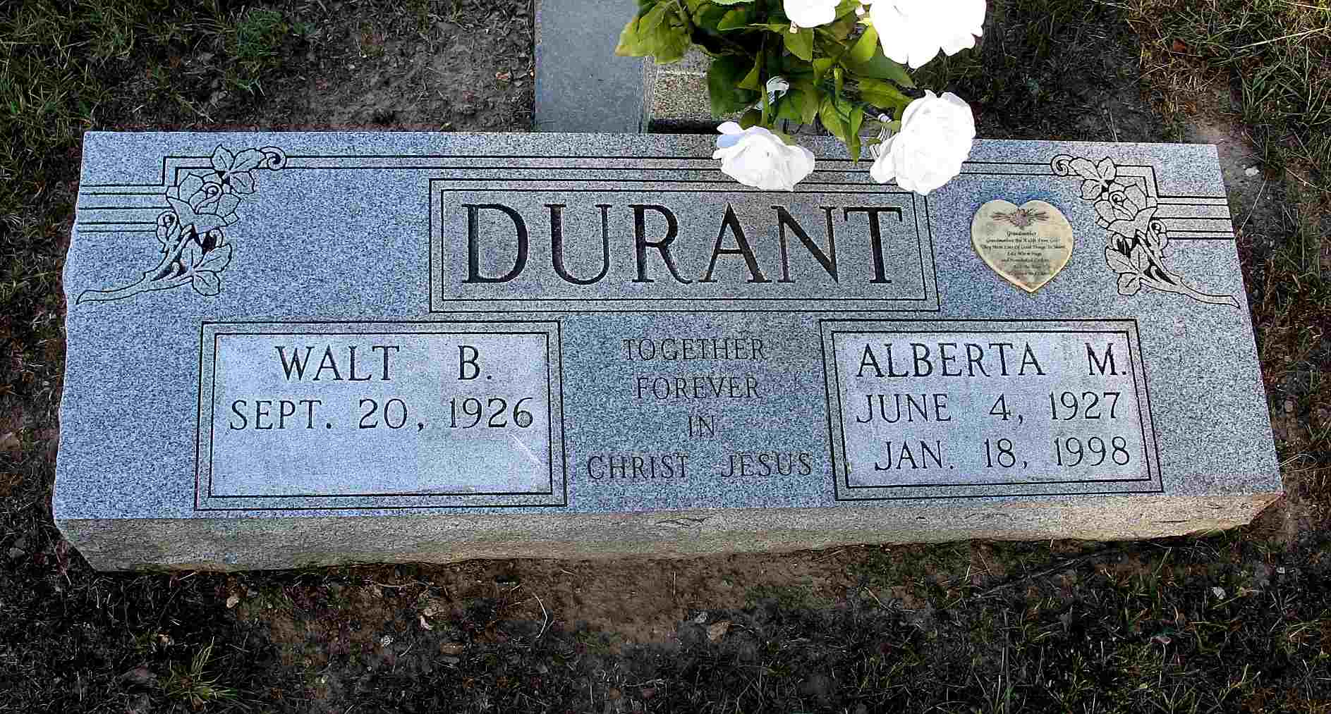 | DURANT, Walt B. | Sept. 20, 1926 | No Date | SSW: Alberta M. | Headstone Darla Ball Marbut Photo Jack Fly |