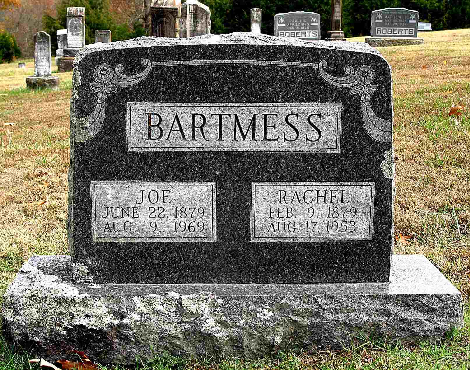 SSW: Joe - Research Note: Daughter of John William Hemphill and Mary J. Rowland. Joe, her husband was the informant on the death certificate. Rachel Hemphill, age 21, married Joseph Bartmess, age 21, on Nov. 4, 1900 in Golden, Barry Co., MO. | Death Certificate MO Marriage Records SS Claims Index Phyllis Long Headstone Darla Ball Marbut Photo Jack Fly |