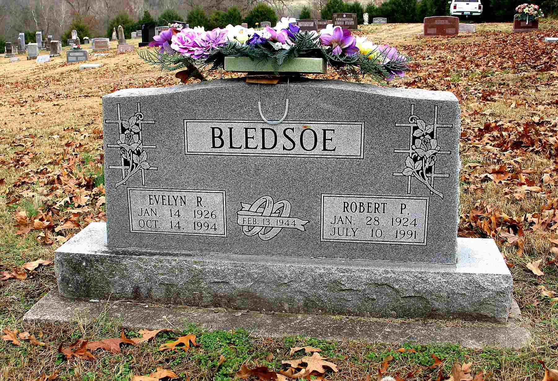 July 10, 1991 | SSW: Evelyn Ruth - Inscription: "Married Feb. 13, 1944" - Research Note: Son of Isaac N. Bledsoe and Mary L. Montgomery. | SS Claims Index Phyllis Long Headstone Darla Ball Marbut Photo Jack Fly |