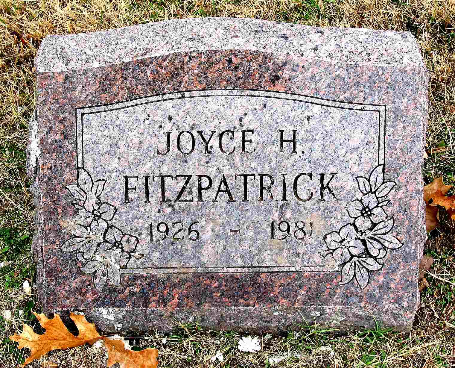 | FITZPATRICK, Joyce Loraine (HARDWICK) | Mar. 26, 1926 | Aug. 25, 1981 | Research Note: US Cadet Nurse Corps, Hillcrest Memorial Hosp. School of Nursing: Joyce Lorraine Hardwick, 300 Roosevelt St., Sand Springs, Tulsa Co., OK. Admitted at age 19, Date of birth, Mar. 26, 1926. Admitted to school June 1, 1945. Admitted to the Corps on June 1, 1945, Certificate issued on June 30, 1945. Daughter of Herbert F. Hardwick and Ethel C. Worley. Joyce L. Hardwick, age 23, married Wallace Wade Fitzpatrick, age 25, on Sept. 3, 1949 in Boone Co., MO. Both gave residence as Springfield, Greene Co., MO. | MO Marriage Records Phyllis Long Photo Jack Fly |