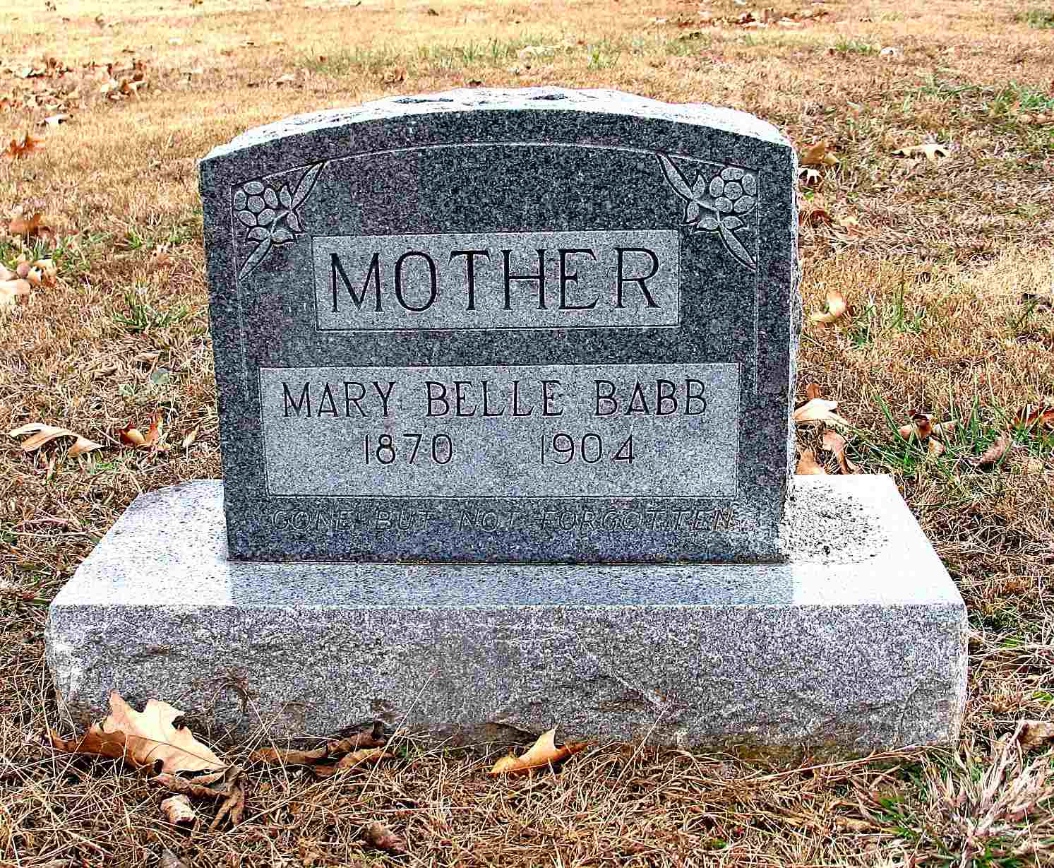 | BABB, Mary Belle | 1870 | 1904 | No Data | Headstone Darla Ball Marbut Photo Jack Fly |