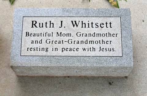 Research Note: She was the daughter of Joe L. Candedias "Pete" Deno and Nancy Ellen Fuller. In 1928, in Arkansas, she was united in marriage to Otto Whitsett, who preceded her in death in 1978. Also preceding her in death were her parents; three sons, James Whitsett and two in infancy; two brothers; two sisters and two grandsons, David Wheeler and James Randel Hamilton. Surviving are two daughters; sixty-seven grandchildren; forty-seven great grandchildren; sixteen great-great grandchildren and two great-great-great grandchildren. Ruth grew up in Arkansas, where she received her education. She resided in California several years, and was a cashier in Lake Tahoe casinos. Twenty-five years ago she moved to Missouri to make her home and had lived in Branson the last five years. - Ruth Deno first married Sammie Ivey on Dec. 10, 1928 in Truman, AR. - After only being married to Sammie Ivey for one month she left him for unknown reasons and moved back to her father's home. Sammie was distraught and shot himself. He was questioned in the hospital and he said he shot himself and then died a few days later. Ruth Ivey married Otto Whitsett on May 5, 1930 in Truman, AR. - Another Photo | Obit AR Marriage Records Findagrave Note Phyllis Long Photos Jack Fly |