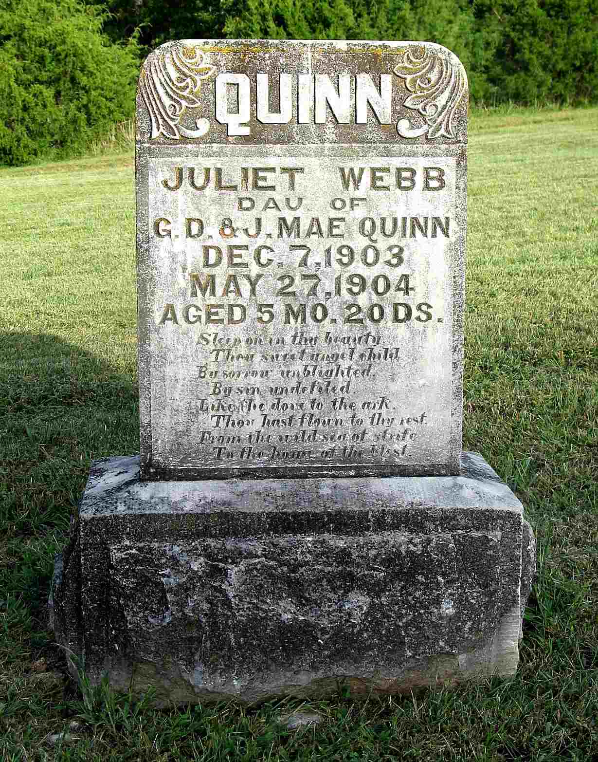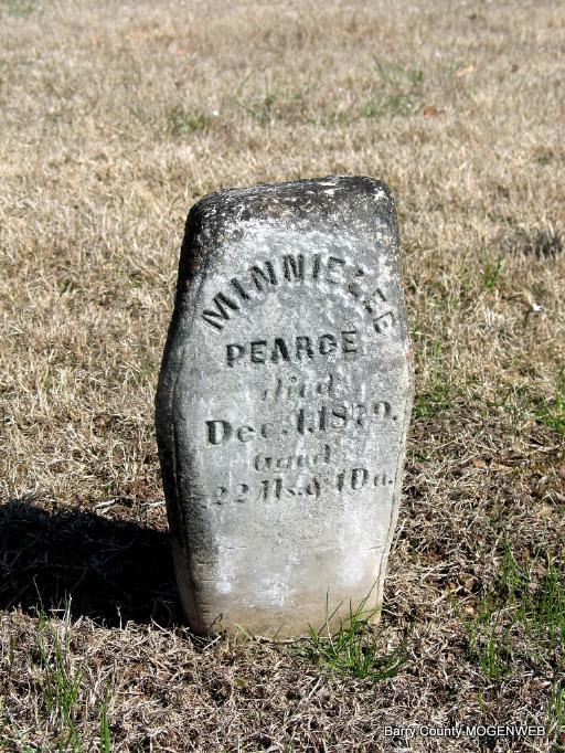 | PEARCE, Minnie Lee | Abt. 1877 | Dec. 1, 1879 | Inscription: "Aged 22 mo and 1 D" | Photo Jack Fly |