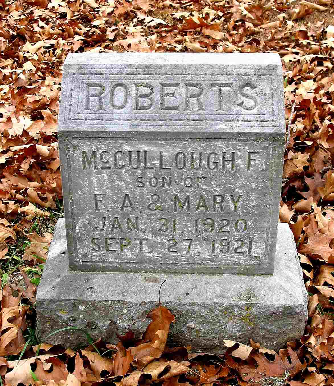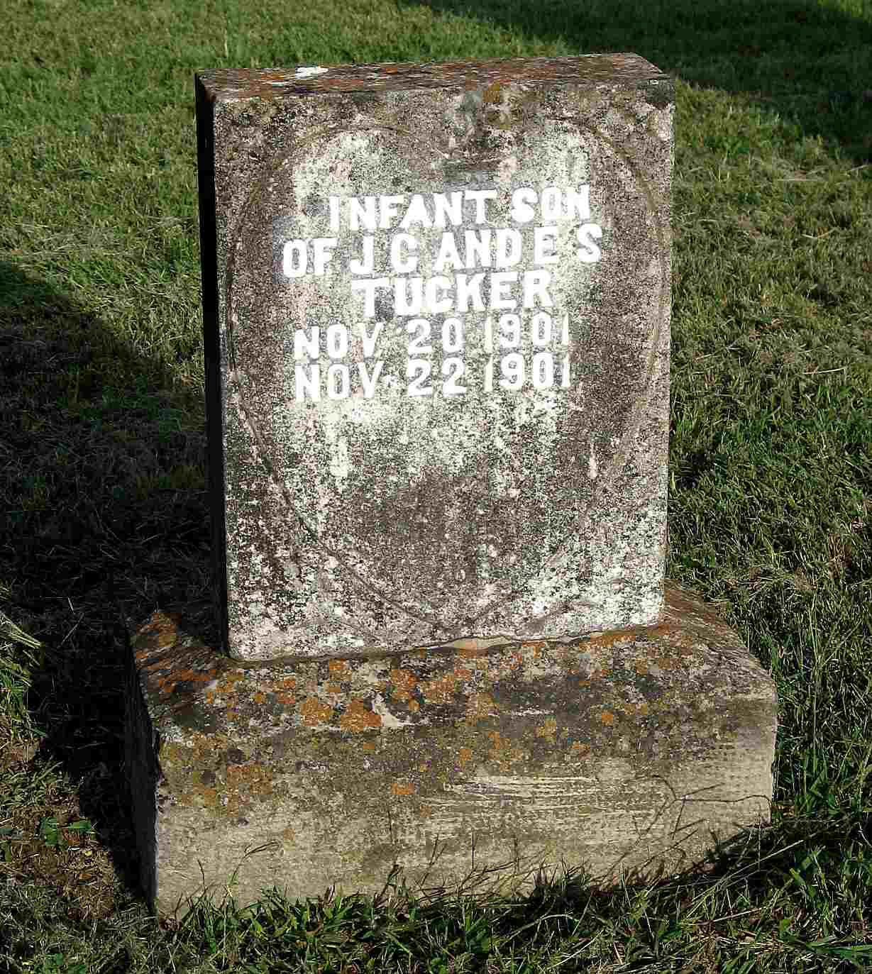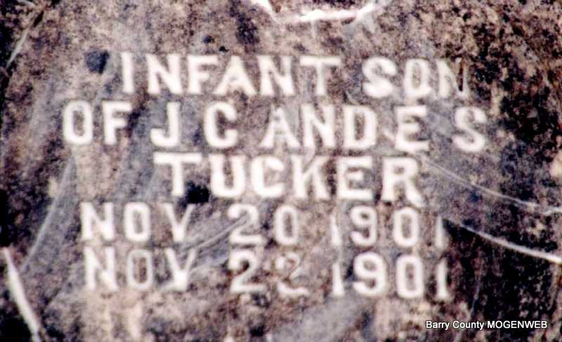 | TUCKER, Infant Son | Nov. 20, 1901 | Nov. 22, 1901 | Inscription: "Son of J. C. and E. S. Tucker" - Research Note: Son of James C. Tucker and Emma S. Salyer. - Another Photo | Note Phyllis Long Photo Darla Ball Marbut Photo Jack Fly |