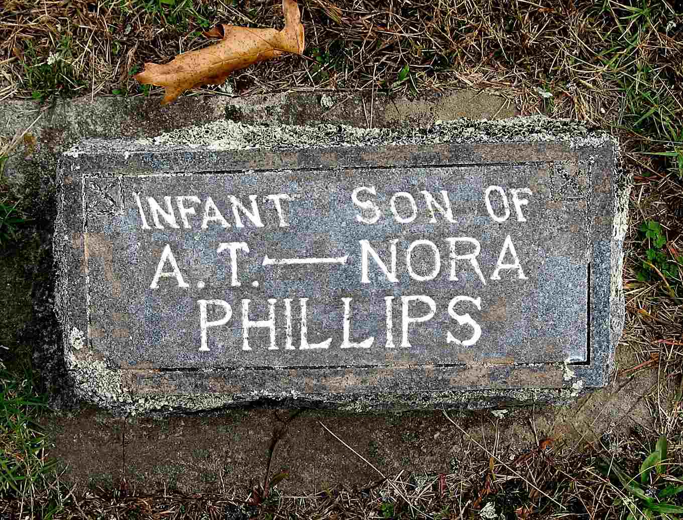 Inscription: "Son of A. T. and Nora Phillips" - Research Note: The death certificate reads that A. T. Phillips, born in MO and Nora Perkins, born in MO, where the parents. Burial was in Spring Grove Cemetery. The informant was G. D. Quinn. | Photo Jack Fly Death Certificate Donna Cooper |