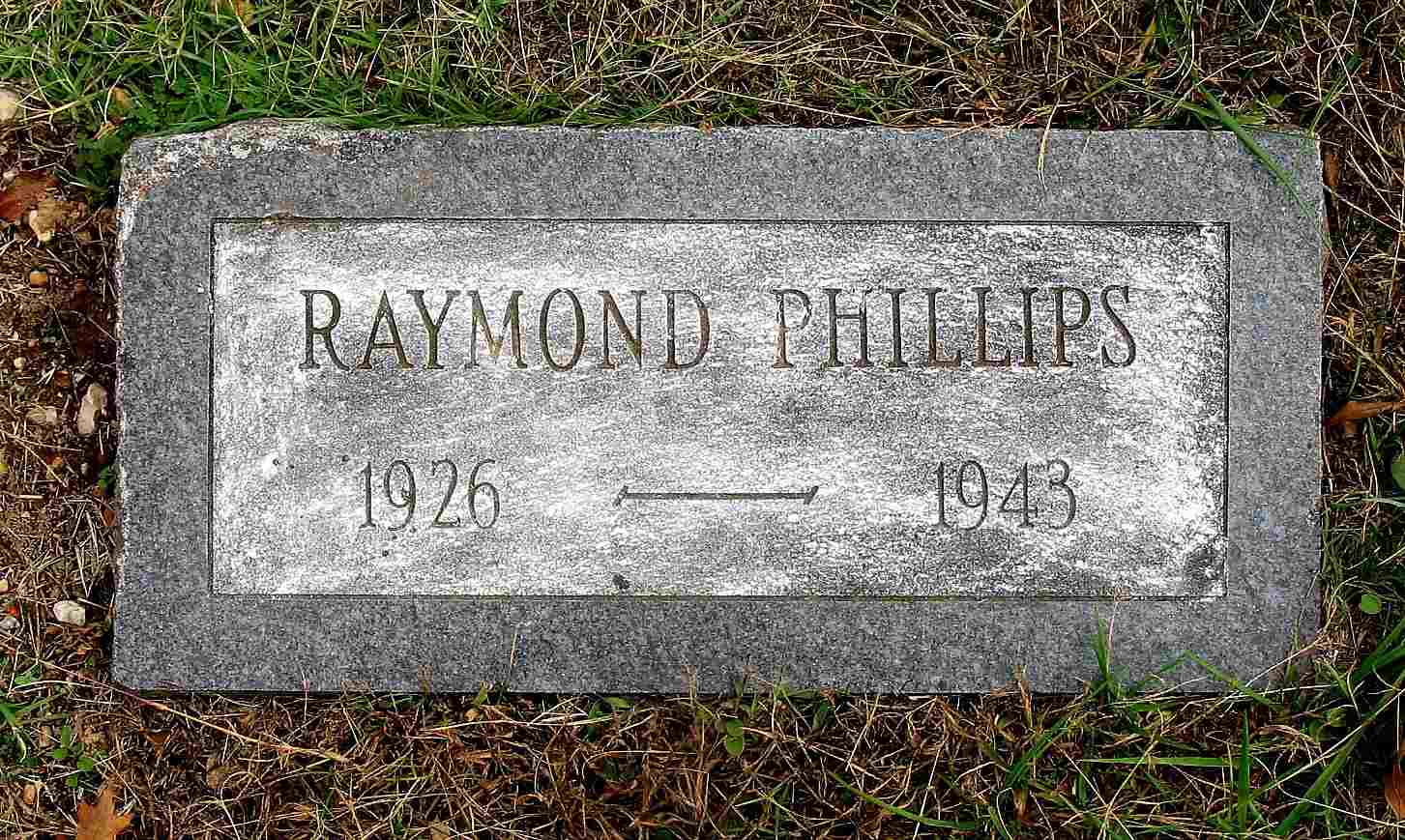 Research Note: Son of Elvin Phillips and Nettie Davis. He died at the age of 17 years when he fell from a milk truck and was run over. | Headstone Darla Ball Marbut Niece Jan Mintiens Photo Jack Fly |