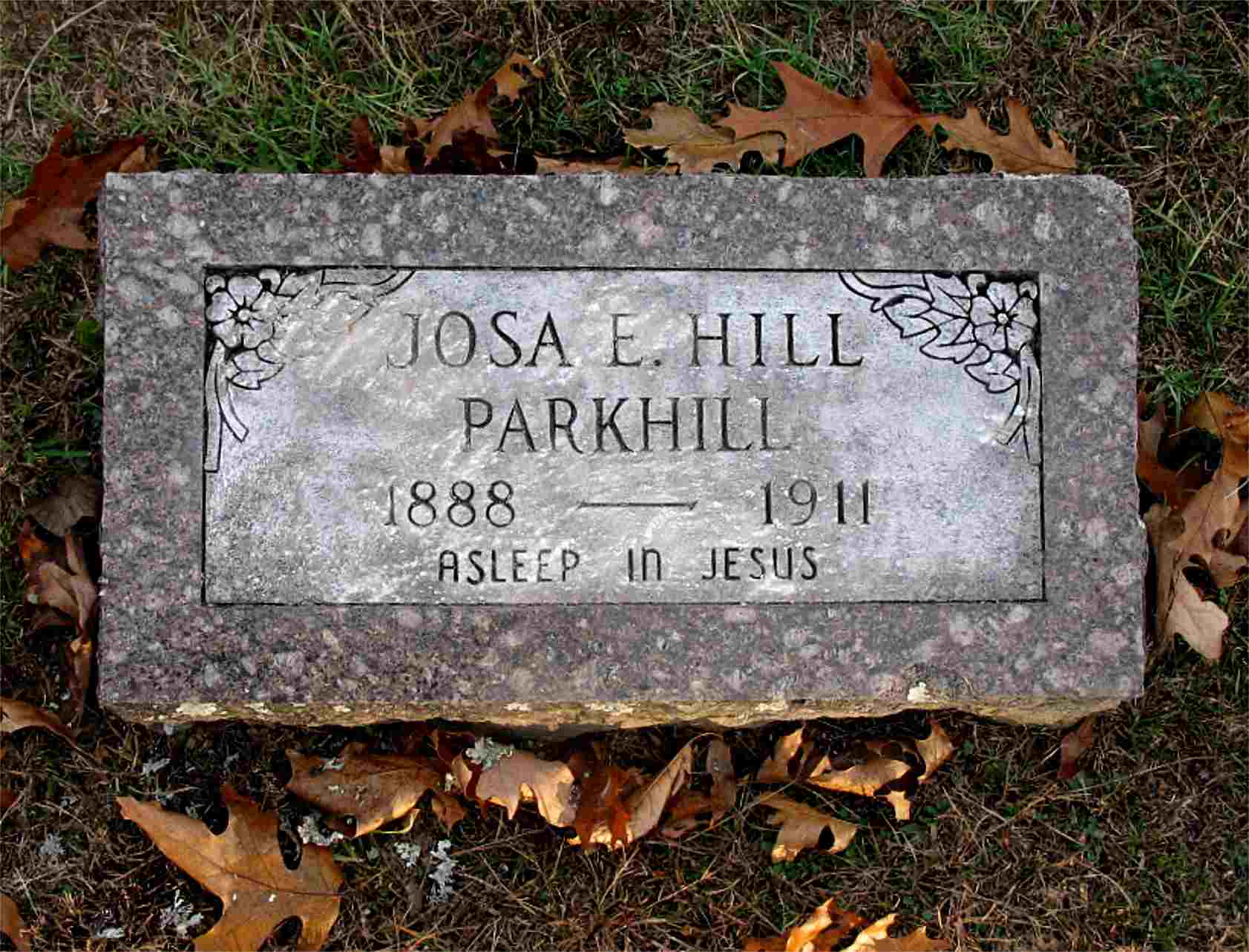 Research Note: Her death certificate listed her father as Mathew Hill born in Stone County, MO and her mother as Georgia Ridinger born in Boone Co., AR. The date of her birth was given as Dec. 11, 1887 but her stone reads 1888. It listed her burial in Spring Grove Cemetery. W. B. Stiles of Golden gave the information. - Cassville Republican, Feb. 23, 1911 - Golden News: Mrs. Josa Parkhill of Eureka Springs died at her father's home near Golden last Wednesday evening at 2 o'clock and buried at the Viney Grave Yard Thursday. Mrs. Parkhill was 22 years old. About 6 years ago she was married to Louie Parkhill of Eureka Springs. She leaves a little 2 weeks old baby, which Mr. Parkhill's brother will take care of. May the Lord bless her companion and other relatives in their sad trouble. It is hard to give our loved ones up but it is a debt we all have to pay. | Death Certificate Donna Cooper Online Obit Phyllis Long Photo Jack Fly |