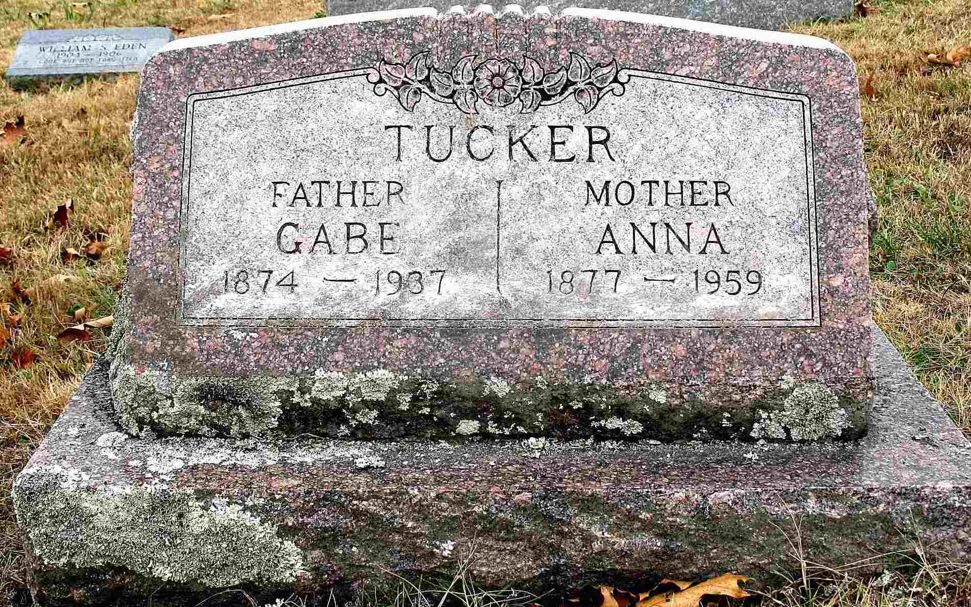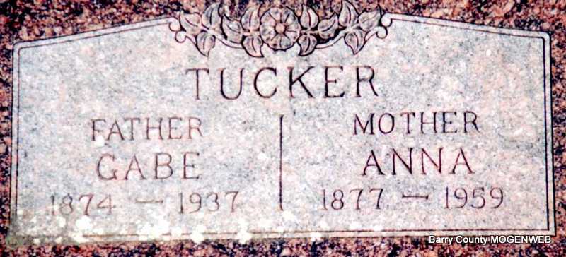 | TUCKER, "Gabe" Gabriel Tilson | 1874 | 1937 | SSW: Nancy Anna - Inscription: "Father" - Research Note: Son of James Jerden Tucker and Eliza Adaline Lewis. Annie Clark, age 18, married Gabe Tucker, age 22, on May 3, 1896 in Mano, Barry Co., MO. - February 22, 1908, Saturday, Cassville Democrat - Golden Items: Gabe Tucker is going to move on the J. J. Clark farm on Owl Creek, this summer. - February 28, 1918, Thursday, Cassville Republican - Golden: Gabe Tucker is planning to move to Oklahoma soon. He will hold a public sale March 14th. - Cassville Republican, Thursday, March 14, 1918 - Golden: Gabe Tucker's sale on the 4th was attended by a large crowd. Everything sold at a good price, Mr. Tucker and family will leave soon for Oklahoma. We regret very much to see them leave but wish them success. - Cassville Democrat, Saturday, Feb. 28, 1920 - Golden: Gabe Tucker and wife of Urbanette, Ark., are visiting relatives and friends in and around town. - Back in Barry Co., MO in the 1930 census. - Another Photo | Census MO Marriage Records Online Newspapers Phyllis Long Note Photo Darla Ball Marbut Photo Jack Fly |