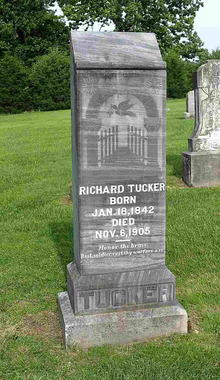 Research Note: Judge Richard Tucker - Son of James Tucker and Catharine (Bradley) Tucker. Civil War Veteran - Pvt 24th Reg't Mo Inf 1861-1864. Married Martha Lewis June 20, 1861 by James Lee. - Cassville Democrat, December 9, 1905 - Judge Richard Tucker Passes Away - It is with a sad heart that we chronicle the death of Judge Richard Tucker, at his home near Golden, Monday, Nov. 6, 1905, after a lingering illness of about two years, age 65, 9 months, and 19 days. He was born in Bond County, IL, Jan. 18th, 1842, and went to Madison County, AR, in 1851, to Barry County in 1852, with his parents, and settled in Roaring River Township, where he grew to manhood. At the commencement of the war he enlisted and served under the late Col. R. W. Ryan, whom he always held in the highest esteem, and was mustered out of service in 1864 in St. Louis. He served as Constable of Roaring River township from 1866 to 1870, and was deputy sheriff under the late Capt. John H. Moore. He was elected Associate County Judge from the Eastern district three times and served the people well. In 1861, he married Miss Lewis to whom were born three children. They are: Wm. and Jas. Tucker of Golden and a daughter Mrs. Lee of Oklahoma. In the death of Dick Tucker, Barry County has lost a citizen that will long be remembered by our people. He was a man of firm convictions, stood by what he believed to be right. There was a speck of hypocrisy about him, and if he was your friend you knew it. He had the full confidence and respect of all his acquaintances. He was ever ready to assist those in needy circumstances and never turned them away. He was a splendid husband and an indulgent father. Politically he was a Republican. A member of the Mason, I.O.O.F., and G. A. R. Many years ago he moved to Kansas and remained about one year and then moved back to near Golden. He was a man of remarkable ability, never having the school advantages, in his early life. Had the citizens of Cassville known of his death many would have attended the funeral. - Cassville Democrat, November 11, 1905 - County Court Proceedings - The court being informed of the death of Richard Tucker, a former member of this court, it was ordered by the court that a page for the record be set apart to his memory, and that the clerk prepare same; it is further ordered by the court that this court adjourn for one day out of the respect for the late Judge Tucker. - Bio of father James Tucker | Online Newspapers Phyllis Long Online Obit Headstone Darla Ball Marbut Photo Jack Fly |