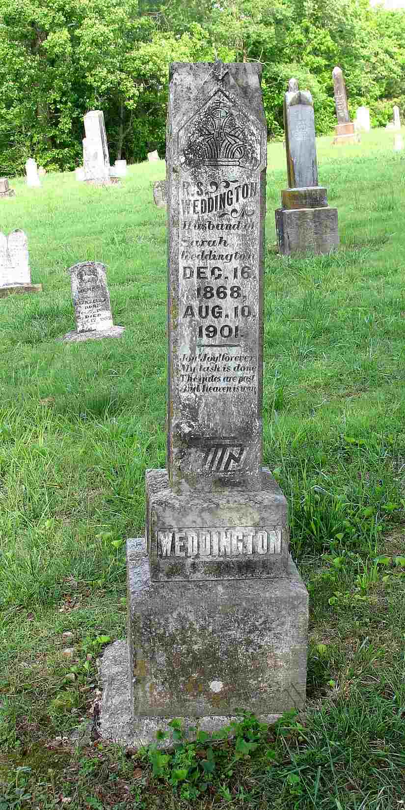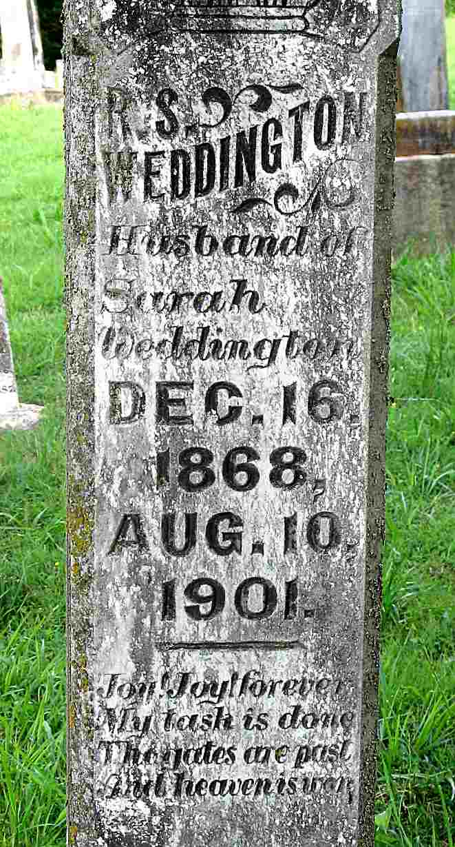 Aug. 10, 1901 | Inscription: "Husband of Sarah" - Research Note: Son of Robert H. Weddington and Emily Jane Harkins. - Another Photo - Another Photo | Census Phyllis Long Photo Jack Fly |
