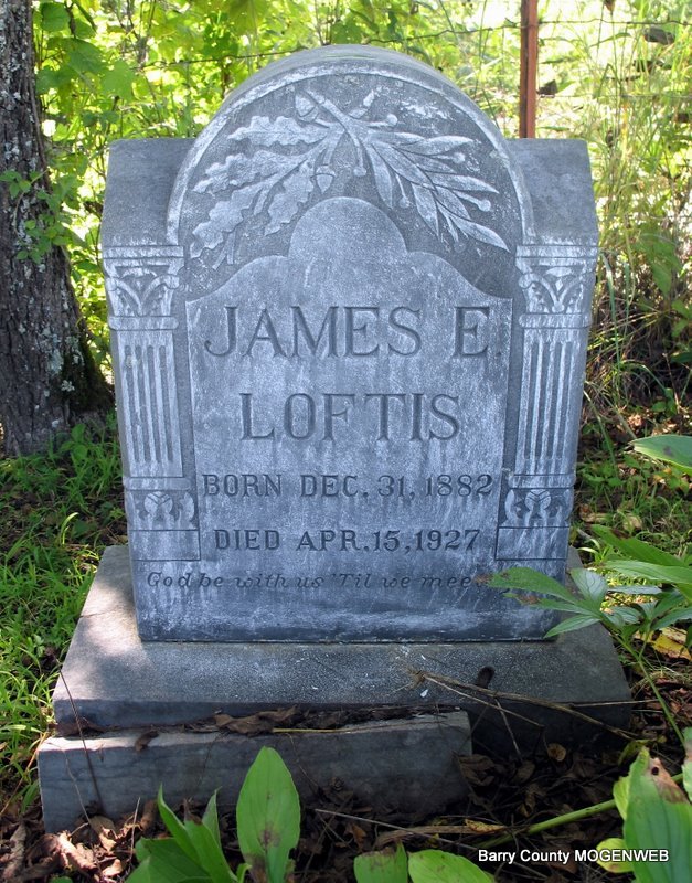 Apr. 15, 1927 | Research Note: Son of James Gabriel Loftis and Wilhanette Mary Bradsher. His wife was Stella Schreiner. She second married a Mr. Barnes and is listed on this page under Barnes. | Census Phyllis Long Headstone Penny Cooper Bailey Photo Jack Fly |