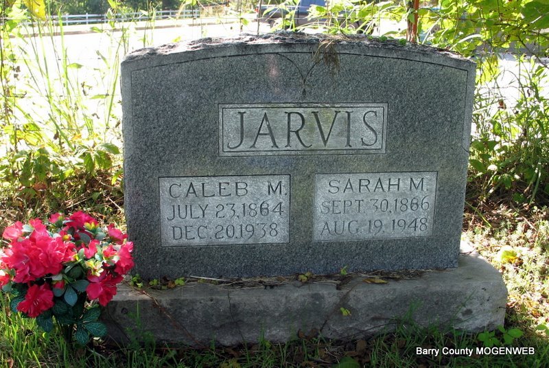 SSW: Sarah M. - Research Note: His death certificate reads that his wife's name was Sarah M. Jarvis. He was age 74 years, 4 months and 27 days old when he died. His father was Weldon Jarvis, born WV and his mother Elizabeth Hensley, born WV. Delbert Jarvis, Viola, MO, was the informant. - Caleb M. Jarvis, age 17, married Sarah Truman, age 17, on Feb. 6, 1884 in Calhoun Co., WV, son of Weldon and Elizabeth Jarvis. Still in Calhoun Co., WV in the 1900 census. In Barry Co., MO by the 1910 census. | WV Marriage Index Census Phyllis Long Headstone Penny Cooper Bailey Photo Jack Fly Death Certificate Donna Cooper |