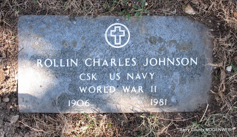 1981 | Inscription: "CSK US NAVY WORLD WAR II" - Research Note: 1910 Census, Red Eye, Wadena, Minnesota - Martin Johnson, age 48; Addie O. Johnson, age 38; Myrtle A. Johnson, age 14; Rollin C. Johnson, age 4, born MN, adopted son, parents born Norway. - His wife was Georgia Evelyn Warren. | Census WW II Draft Card Phyllis Long Headstone Penny Cooper Bailey Photo Jack Fly |