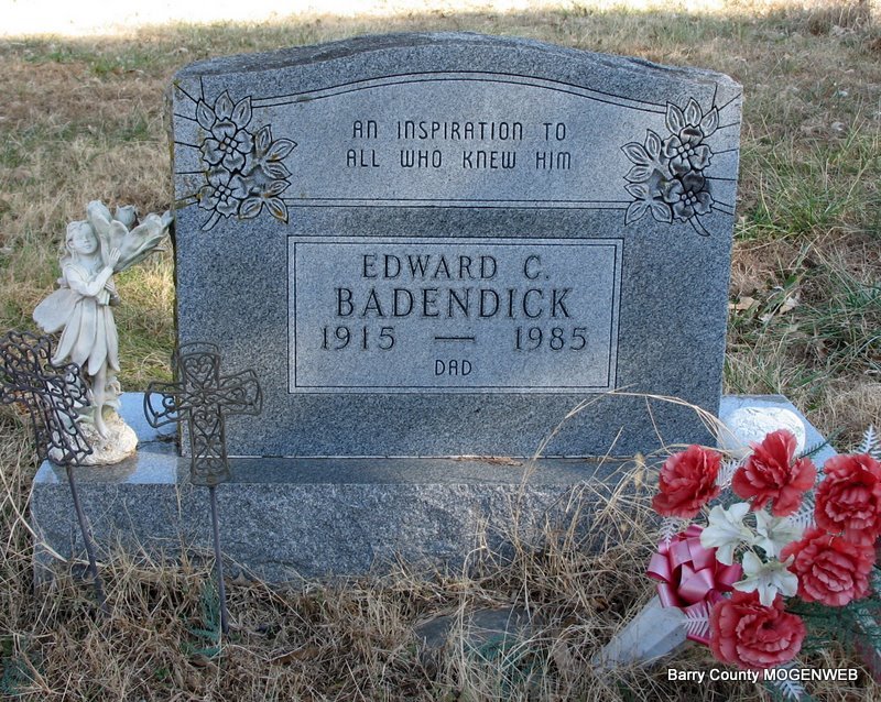 Apr. 1985 | Inscription: "AN INSPIRATION TO ALL WHO KNEW HIM - DAD" - Research Note: Son of Edward Badendick and Martha E. Hawker. His wife was Caroline M. Laudwere. | Census Phyllis Long Photo Jack Fly |