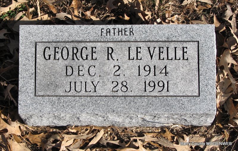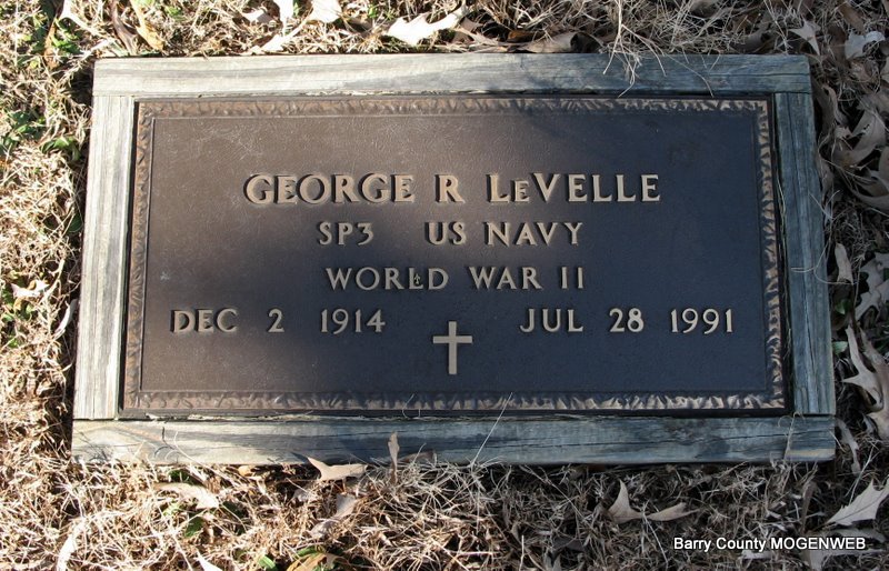 July 28, 1991 | Inscription: "SP3 US NAVY - WORLD WAR II" - Research Note: His wife was Barbara J. Steele. Son of Clarence W. Levelle and Peachie Gladys Jones. - Another Stone - Inscription: "Father" | SS Claims Index Phyllis Long Headstone Penny Cooper Bailey Photos Jack Fly |