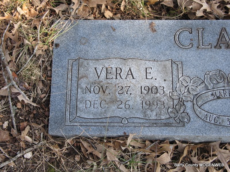 SSW: John Smith - Research Note: Daughter of Cyrus Auguston Van Vacter buried at Viola Cemetery and Emily Roberts. J. S. Barnes married Clara/Clarindia VanVacter on Aug. 14, 1898 in Stone Co., MO.- Another Stone | Census MO Marriage Records Phyllis Long Headstone Penny Cooper Bailey Photos Jack Fly |