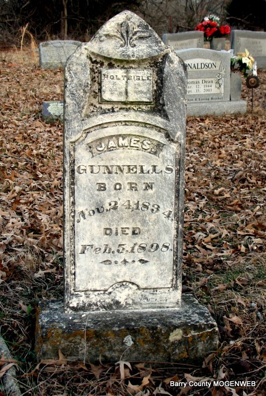 SSW: Thomas Oscar - Research Note: Her maiden name was on her son's death record. Her death certificate reads that her father's name was James F. Gunnells (listed on this page) and her mother's name was unknown to F. E. Hood, Viola, MO, the informant. She was age 83 years old. Her usual address was Viola, MO - in Stone County. She had been widowed two times. Her mother was Elizabeth Hawks. | Photo Jack Fly Death Certificate Donna Cooper |