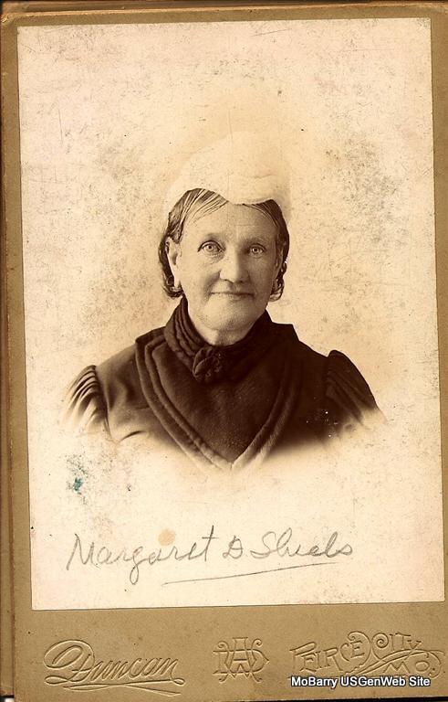 Margaret Dunsmure Shiels, born in Scotland was the wife of George Shiels. She was born May 30, 1835 and died in Tacoma, Washington Sept. 26, 1911. After George died she moved to Washington where several of her daughters had moved. Her son, Andrew (my grandfather) had settled here in Washington. Submitted in 2010 by John Shiels |