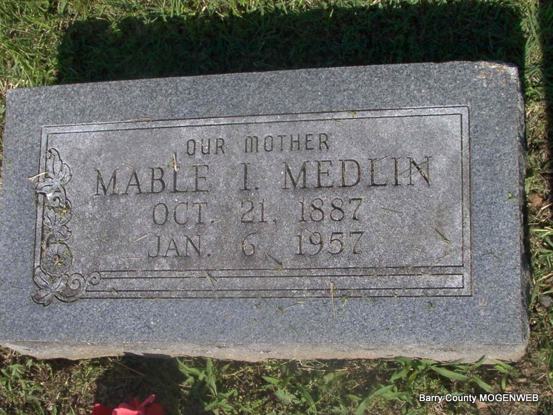 | MEDLIN, Mabel I. (COMBS) | Oct. 21, 1887 Barry Co., MO |