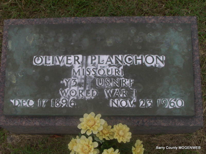 | PLANCHON, Gilbert Clement | Oct. 7, 1893 Barry Co., MO |