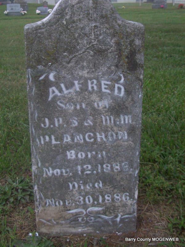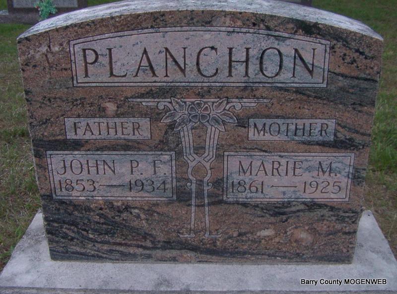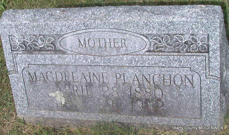 | PLANCHON, Magdelaine (COURDIN) | Apr. 28, 1880 Barry Co., MO |