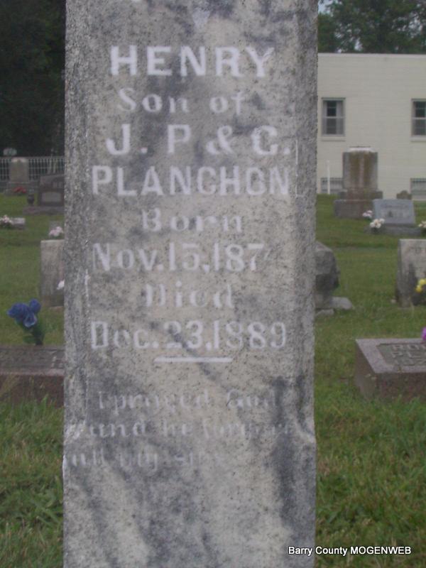 | PLANCHON, Henry | Apr. 7, 1890 Barry Co., MO |