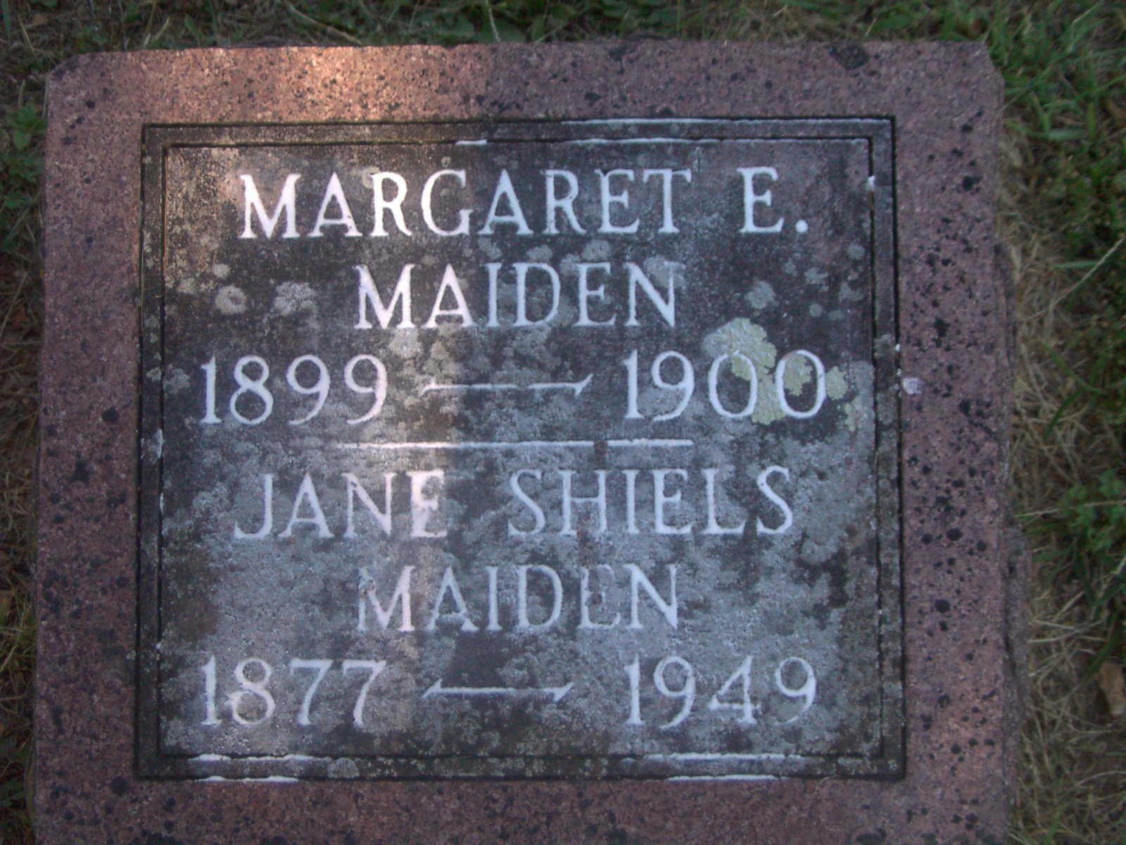 | MAIDEN, Margaret E. | 1899 | 1900 | SSW: Nina Jane - Research Note: Daughter of William W. Maiden and Nina Jane Shiels. | Census Phyllis Long Photo Jay Trace |